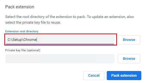 Step 3: In Extension root directory field, browse to folder: C:\Setup\Chrome