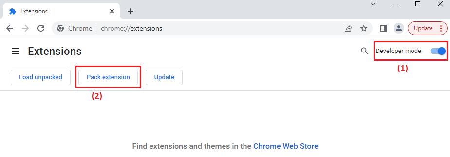 Step 2: Open Google Chrome > Enable Developer mode > Click Pack extension