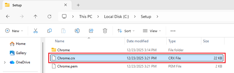 Target: “C:\Setup\Chrome\”