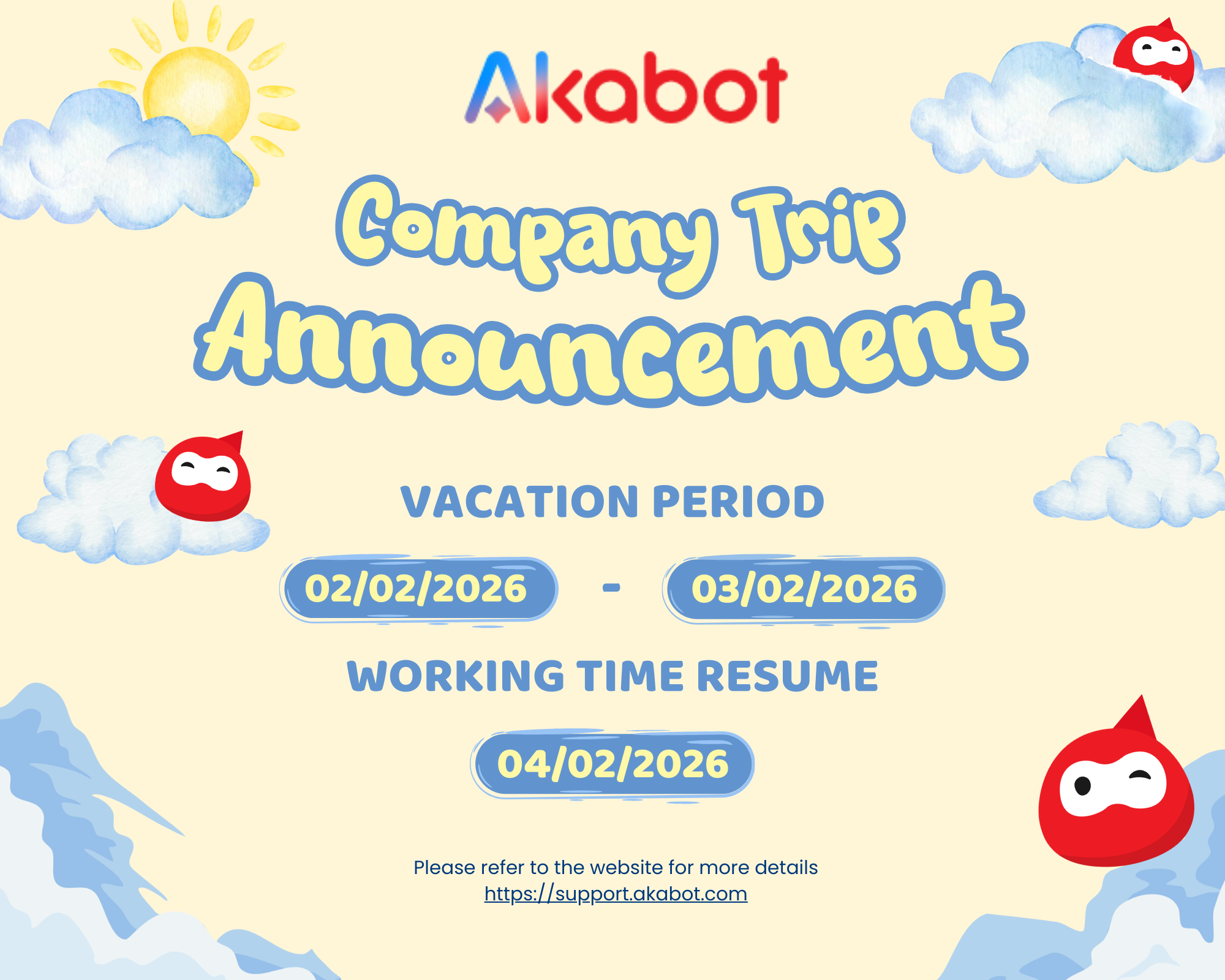 Thank you for your continued use of Akabot Support.