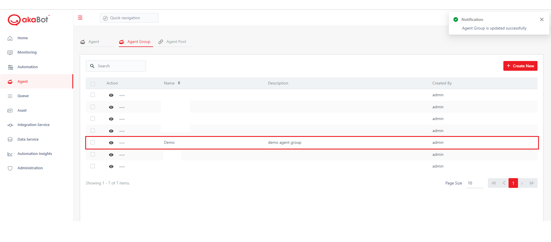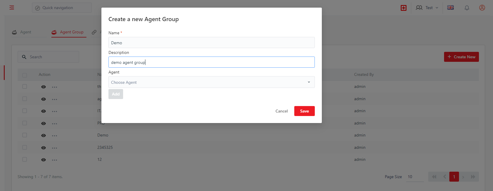 Navigate to the "Agent" section from the menu > click the "Agent Group" tab > and click the "Create New" button.