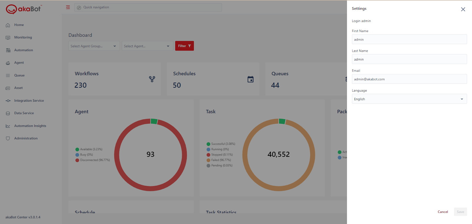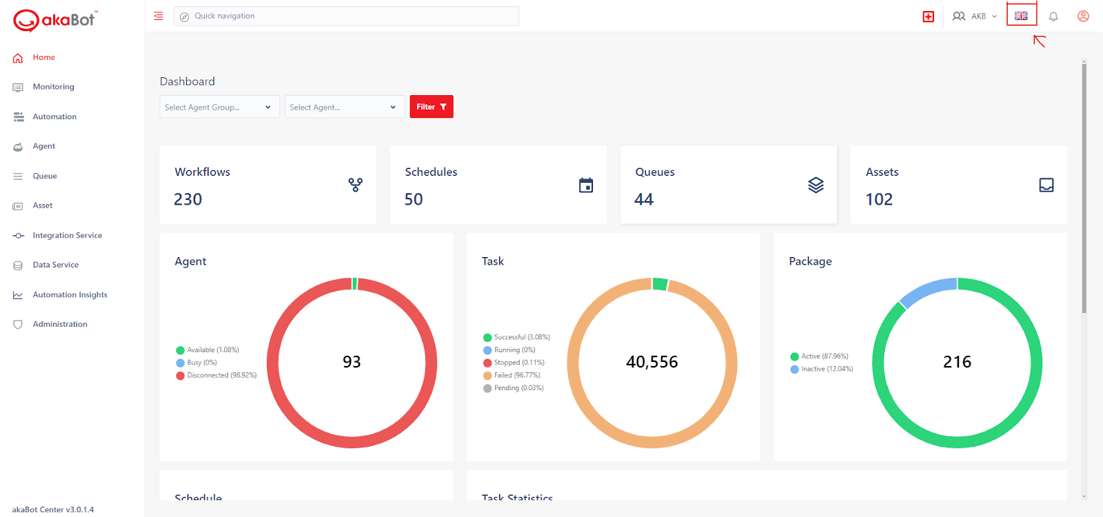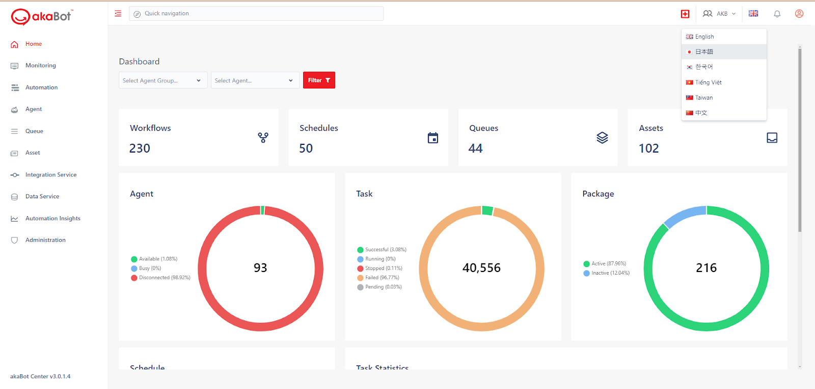 Cách thay đổi ngôn ngữ mặc định của AkaBot Center từ Tiếng Anh sang Tiếng Nhật: