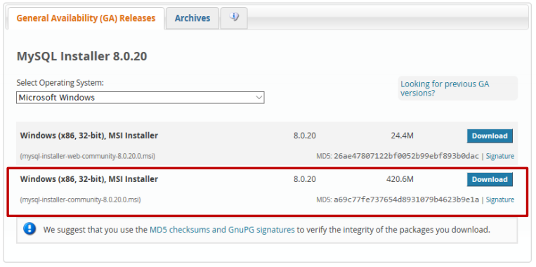Bước 1 – Vui lòng tải xuống MySQL 8.0