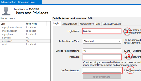 Lưu ý: Dấu “%” trong cột “From Host” nghĩa là tài khoản này có thể truy cập từ xa.