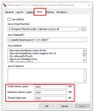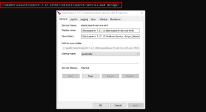Bước 1: Mở Command Prompt với quyền “Run as administrator” và chạy tệp %ES_PATH%\bin\elasticsearch-service.bat manager để mở giao diện quản lý cấu hình của dịch vụ Elasticsearch.