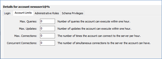 Lưu ý: Dấu “%” trong cột “From Host” nghĩa là tài khoản này có thể truy cập từ xa.