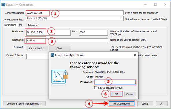 - Nhập địa chỉ IP của MySQL mà bạn muốn kiểm tra vào ô HostName, nhập tên người dùng MySQL (UserName) bạn đã tạo ở bước trước, sau đó nhấp “Test Connection”.