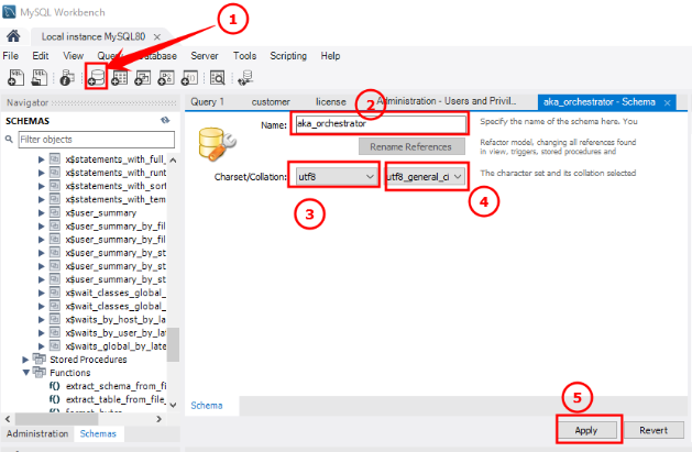 (2) Nhập schema name = “aka_orchestrator”