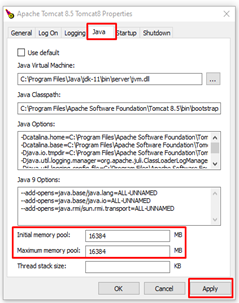 Bước 4: Cấu hình trong tab Java.