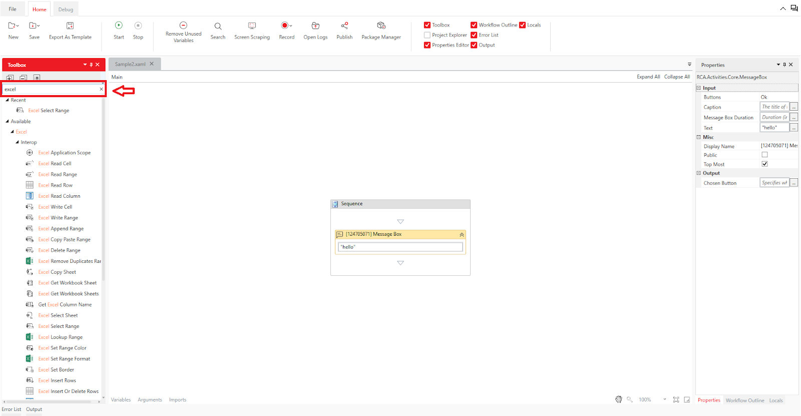 Bạn có thể tìm thấy hoạt động mục tiêu bằng cách sử dụng màn hình tìm kiếm trong Activity Panel.