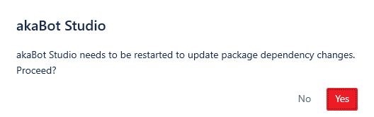 Một thông báo sẽ xuất hiện yêu cầu bạn khởi động lại AkaBot Studio, hãy nhấp vào "Yes".