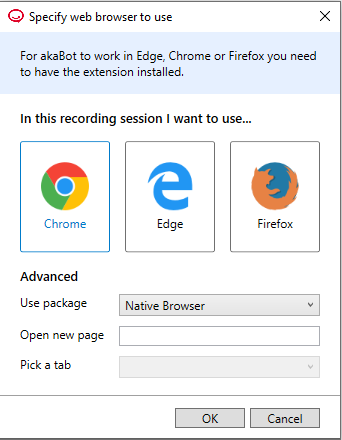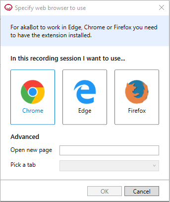 Nếu cả hai gói activity đều đã được cài đặt, bạn có thể chọn trình duyệt và loại activity sẽ dùng khi mở trình ghi (recorder).