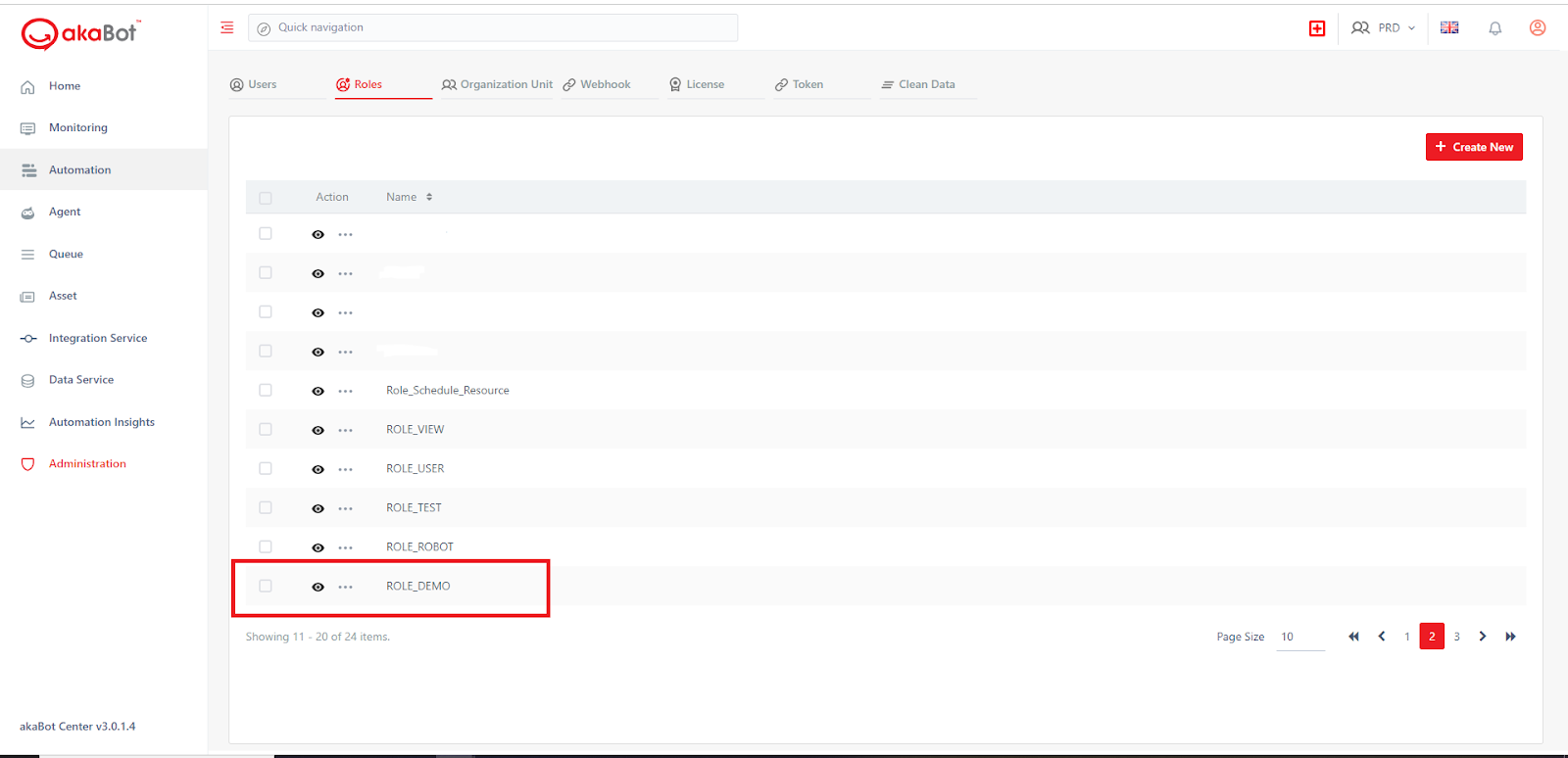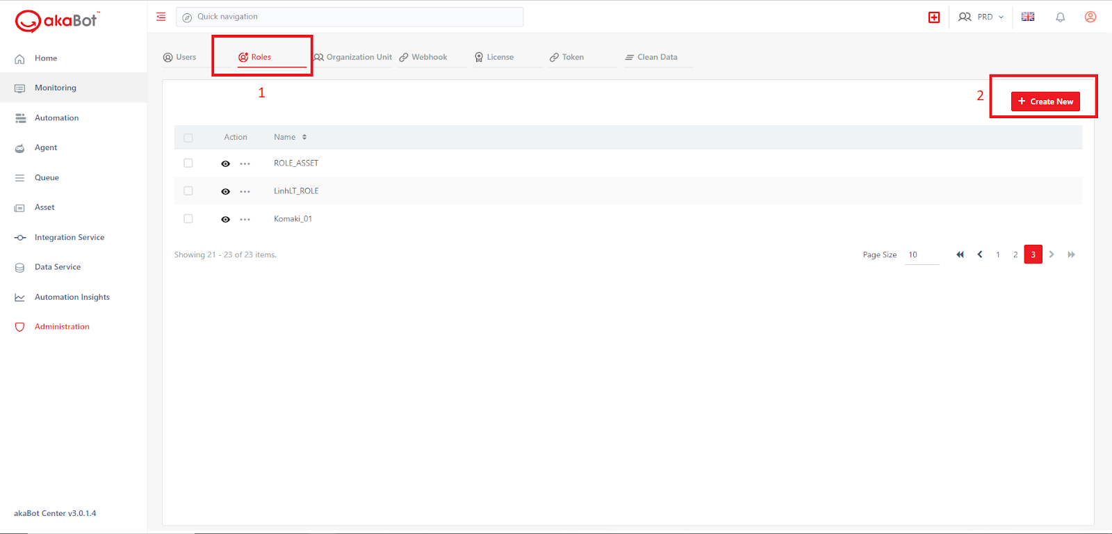 Chọn [Administration] > [Roles] từ menu và nhấp vào nút [Create New].