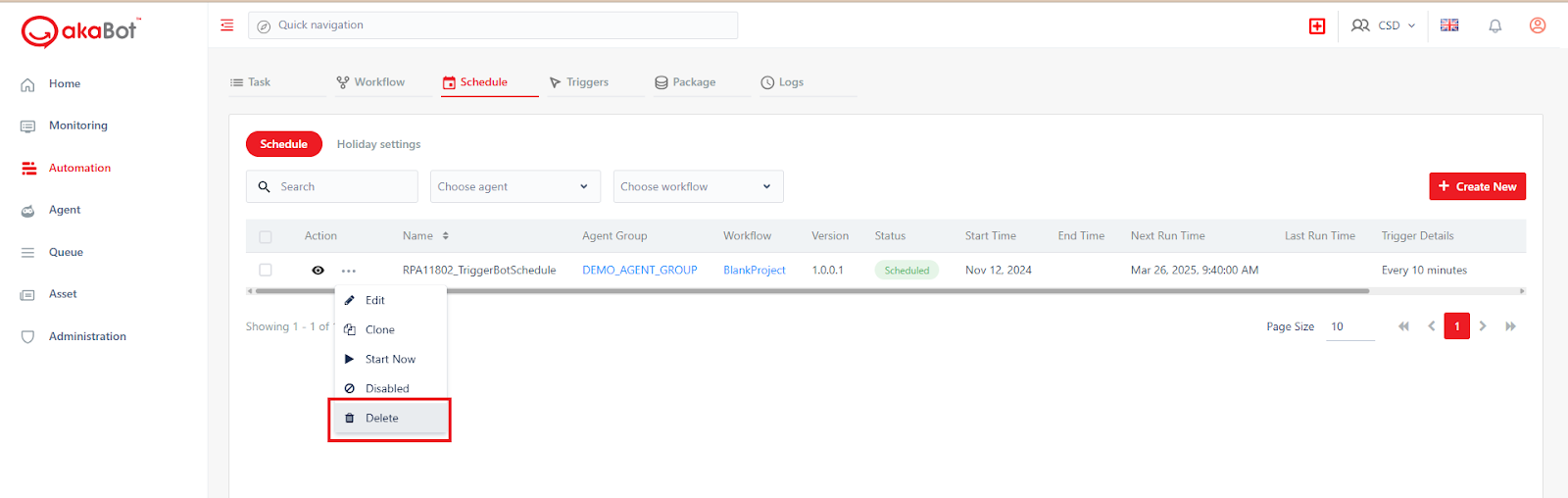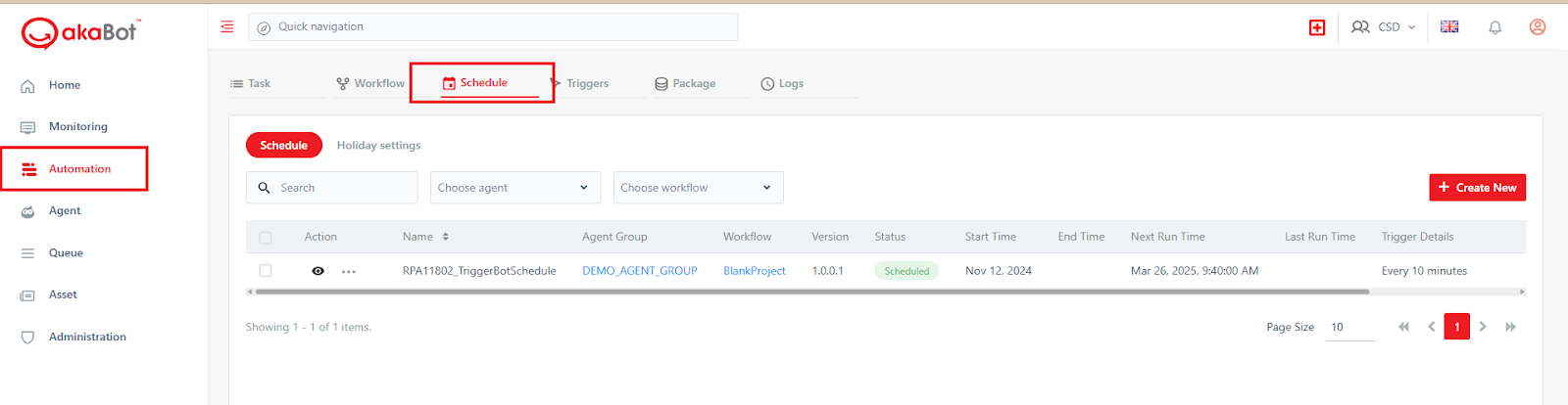 Chọn “Automation” > “Schedule” từ menu, sau đó nhấp “Action”.