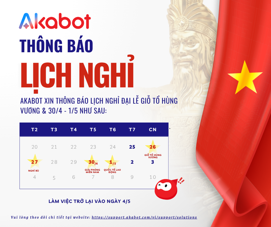 Akabot xin trân trọng thông báo lịch nghỉ như sau: